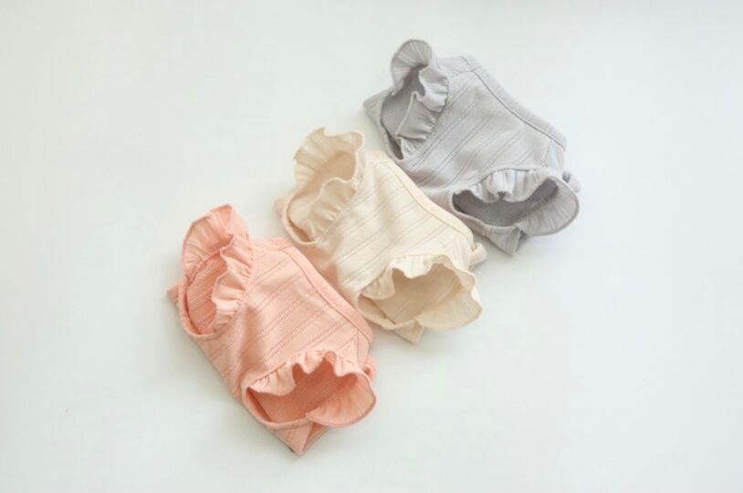 お袖にフリルがついたパステルカラーのノースリーブ。